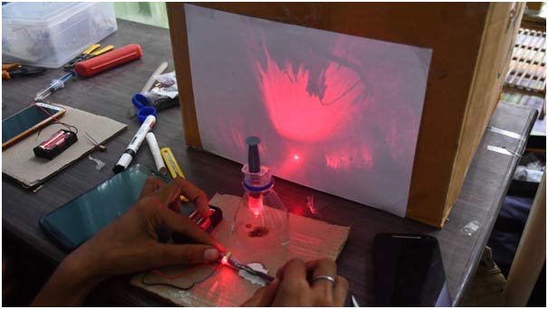 Science experiments like, How to find PH Level of liquid, water drop based microscope, How to find density in salt water and normal Water, electroplating , Explanation of breathing system work by using of balloons etc.