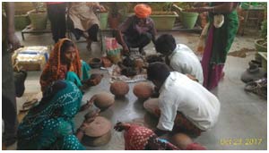 It was also observed that the participants were lazy after lunch break. After third day their productivity started becoming lesser and their focus also started drifting as laziness started setting in. The other reason for lack of interest was products will not dry for second firing so why should we make more. Training suggestions: