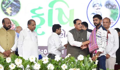 Shri Vijaybhai Rupani, Chief Minister of Gujarat presented "SARDAR PATEL AGRICULTURE RESEARCH AWARD" to Shri Nileshbhai Oghadbhai Dobariya, an incubatee of GIAN, Ahmedabad on the occasion of Krushi Mahotsav 2019